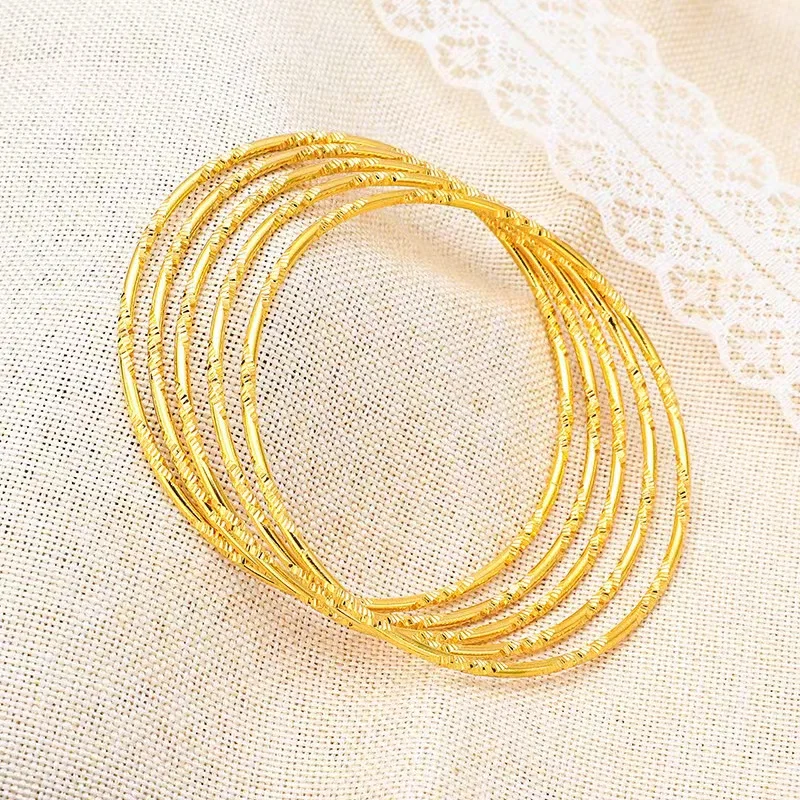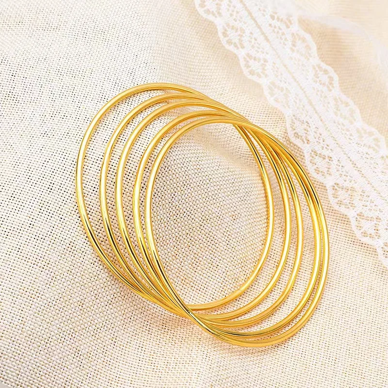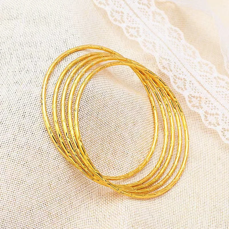 Hot Selling Women's 18K Gold Plated Bangle with Ancient Fashion and Fine Circle Design Trendy Anniversary Gift